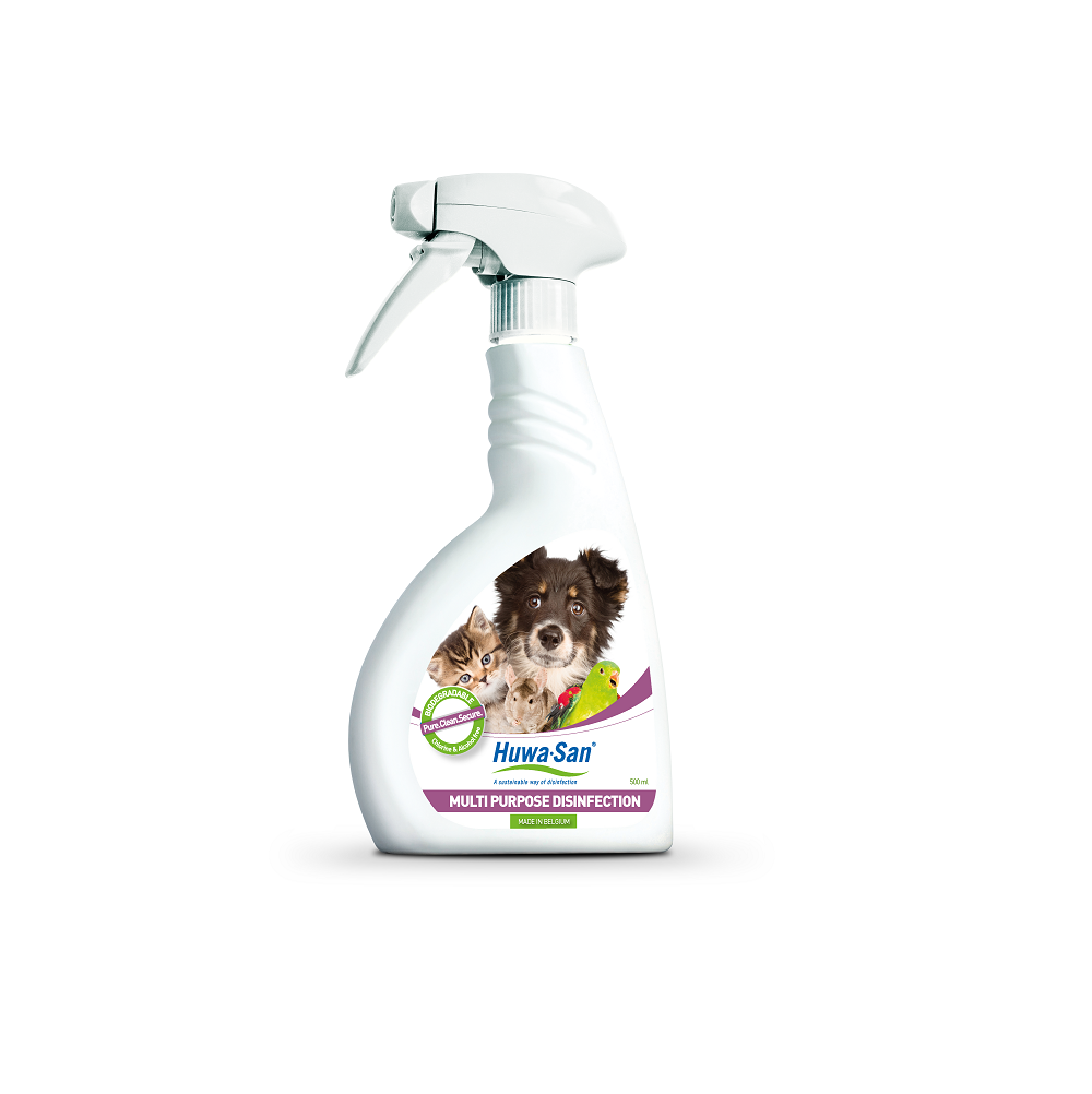 Huwa-San Pets ist ein gebrauchsfertiges Desinfektionsmittel, das speziell für den sehr sensiblen Bereich der Haustierhygiene entwickelt wurde und 99,9 % aller Bakterien und Schimmel sicher beseitigt. Es findet dabei sowohl in privaten Haushalten also auch im professionellen Umfeld wie etwa in Tierkliniken, Tiersalons und Tiergeschäften Anwendung.